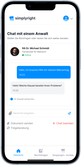 Simplyright ist kein Anwaltsbüro, sondern ein Legal Tech-Unternehmen. Wir verbinden innovative Technologie mit juristischer Expertise, um dir schnell, bequem und digital zu deinem Recht zu verhelfen. Wir übernehmen die Kommunikation, Dokumentation und Prüfung deines Falls – effizient, transparent und nutzerfreundlich. Nur bei komplexen Fällen oder wenn es rechtlich erforderlich ist, arbeiten wir mit spezialisierten Partneranwälten zusammen. -